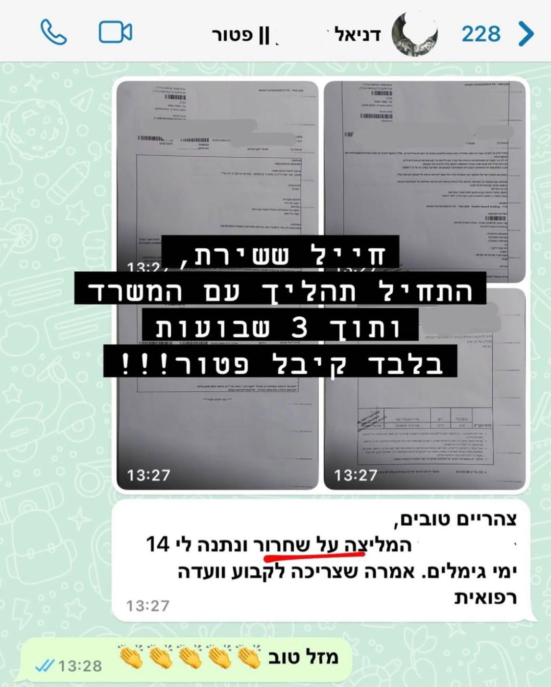 חייל שטופל על ידי משרדנו קיבל פטור תוך – 3 שבועות בלבד!