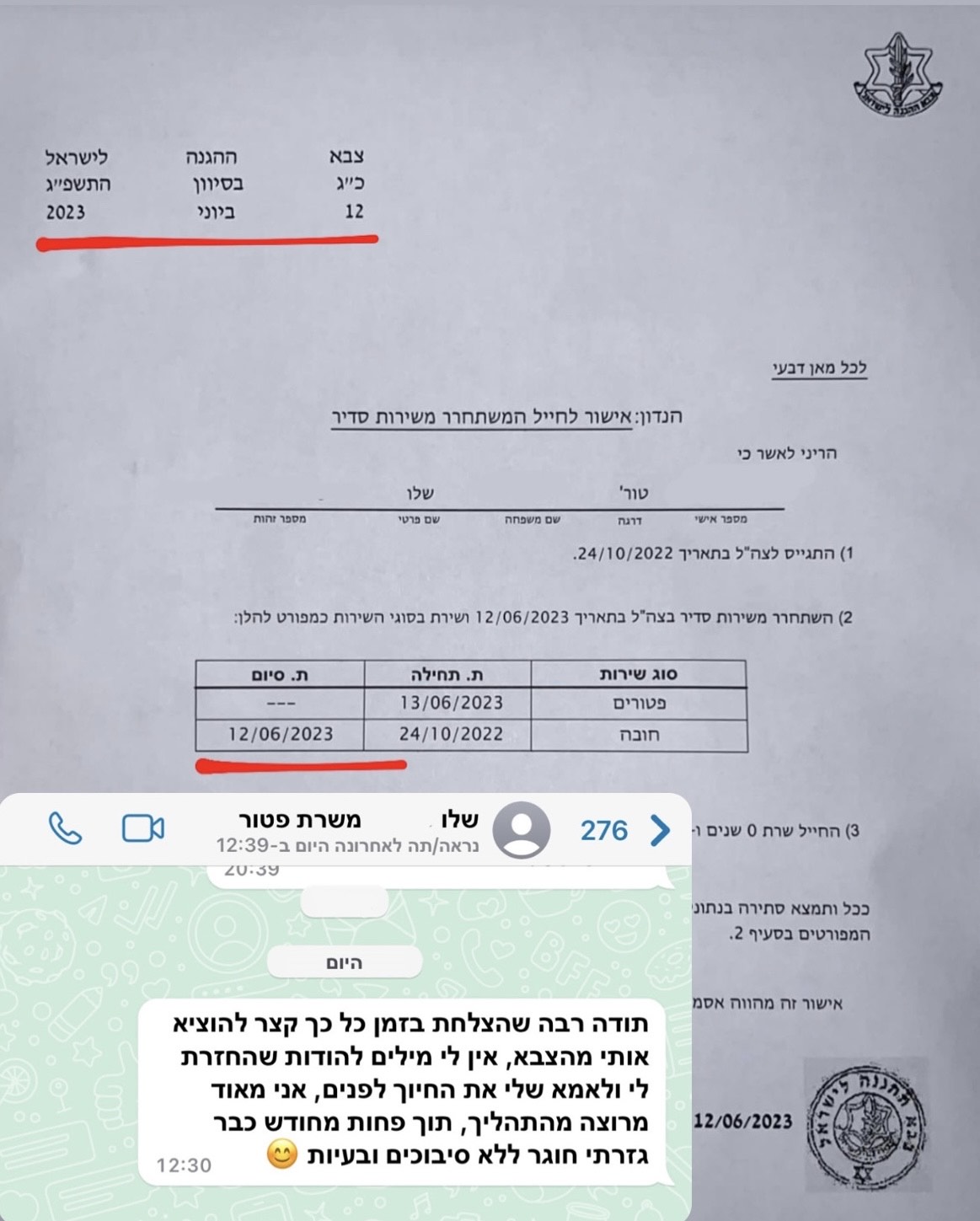 עריקות בזמן מלחמה למשך 91 ימים הסתיימה ללא כליאה ופטור מהמשך שירות צבאי!!