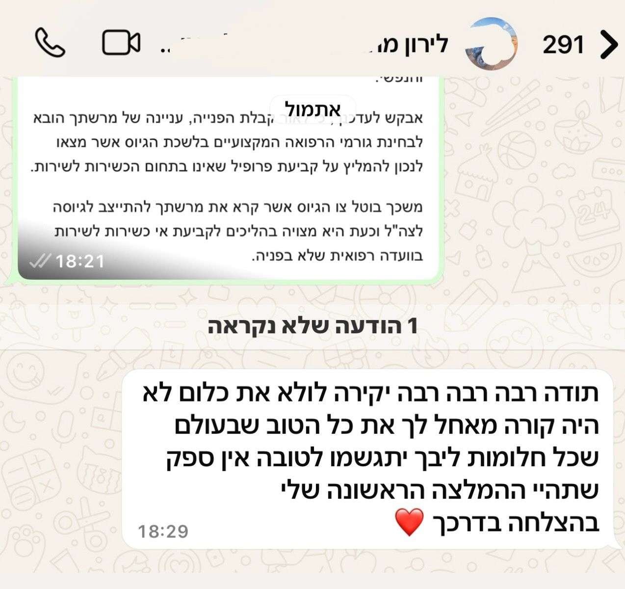 כשנותנים שירות מכל הלב ללקוח- גם המשפחה שלו לא שוכחת לפרגן! קבלת פטור תוך זמן קצר וביטול מועד גיוס!!!