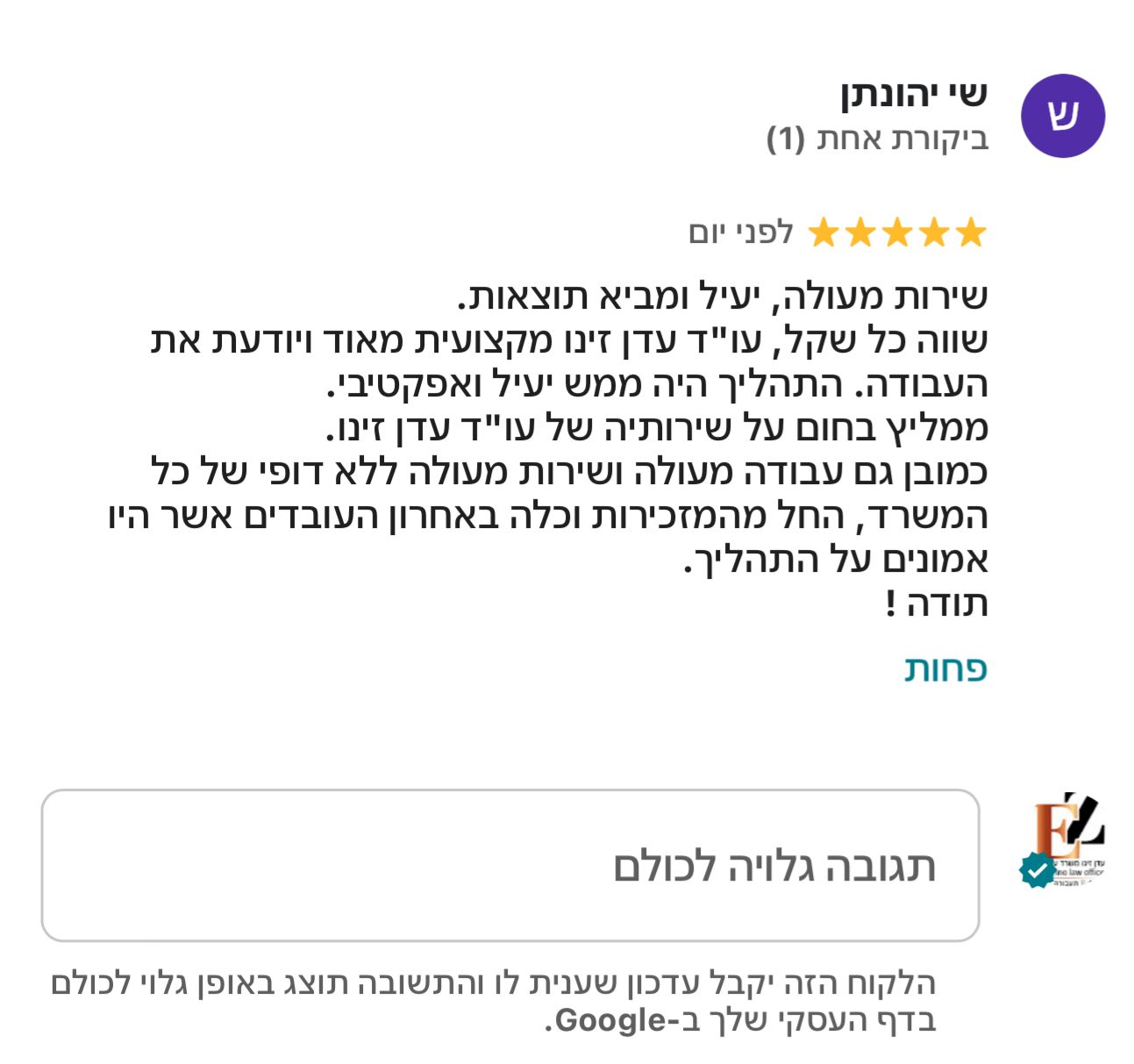 פרגון מלקוח מרוצה שטופל על ידי משרדינו