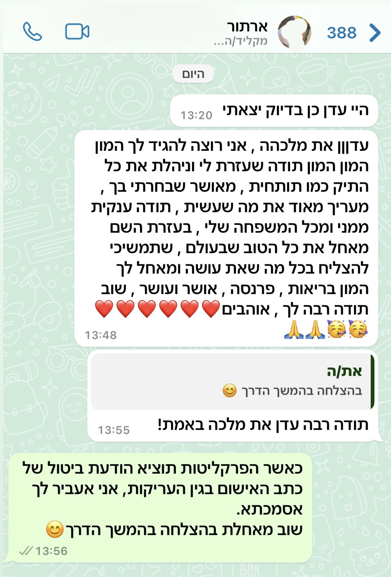 פרגון מלקוח מרוצה שטופל על ידי משרדינו