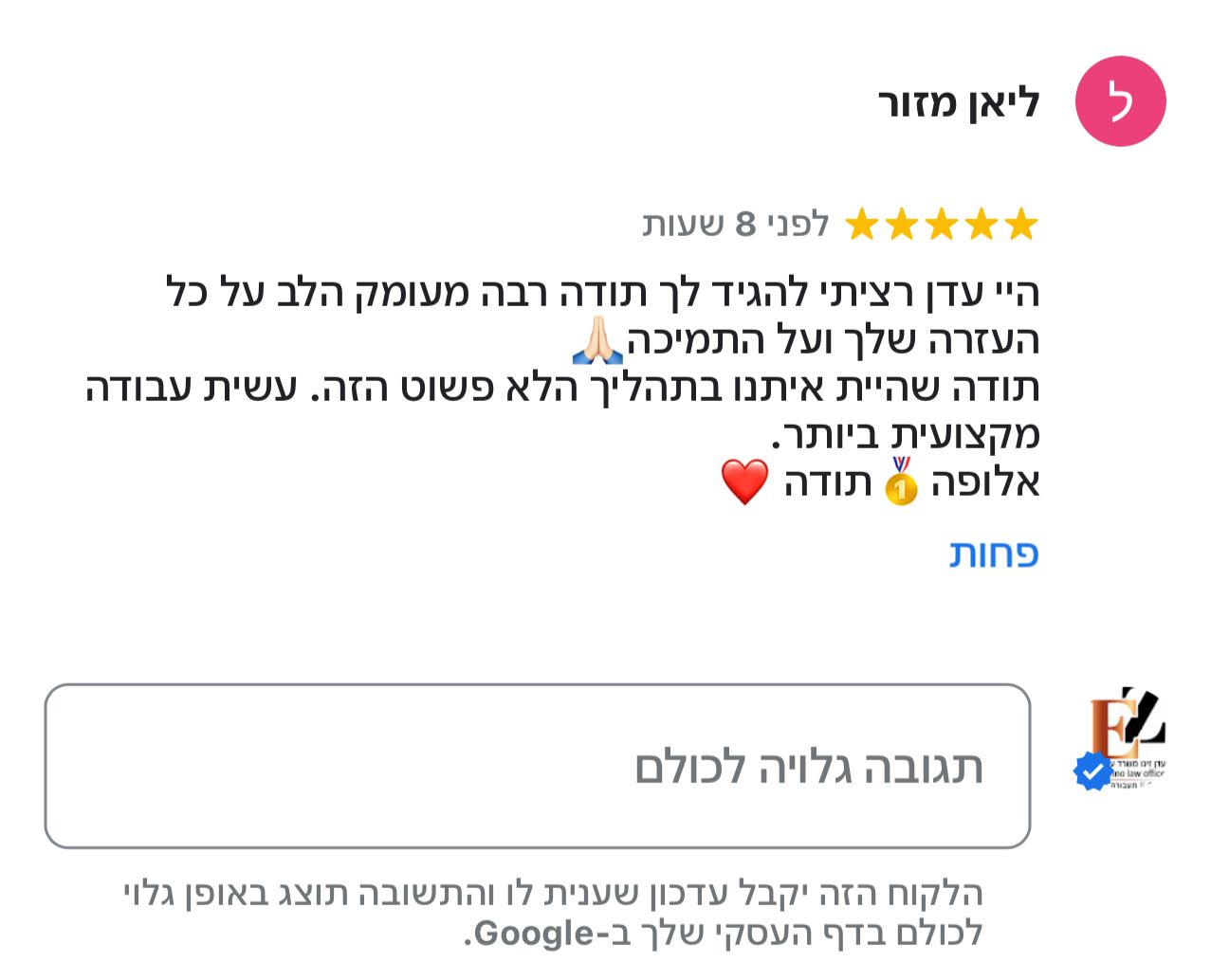 פרגון מלקוח מרוצה שטופל על ידי משרדינו