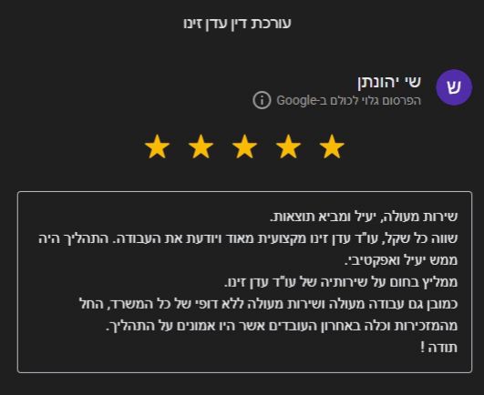 פרגון מלקוח מרוצה שטופל על ידי משרדינו