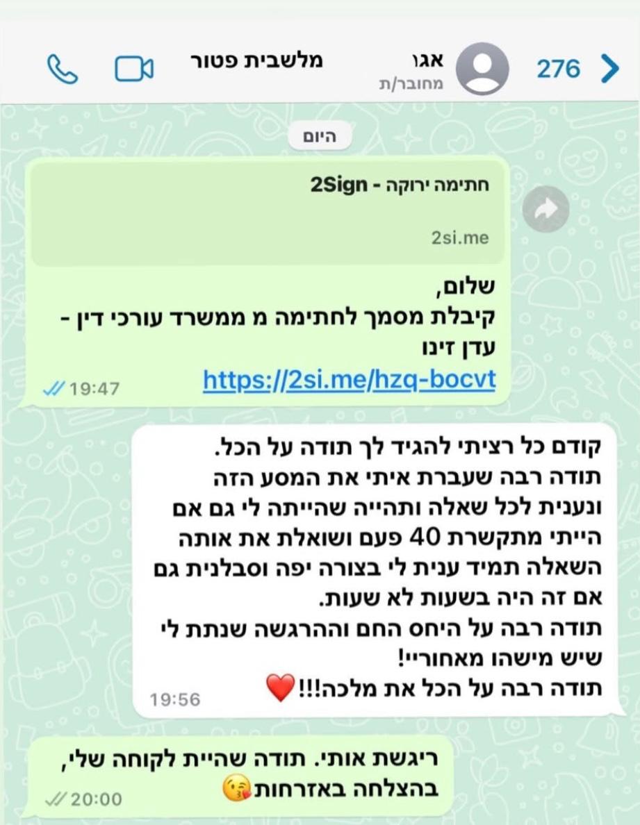פרגון מלקוח מרוצה שטופל על ידי משרדינו