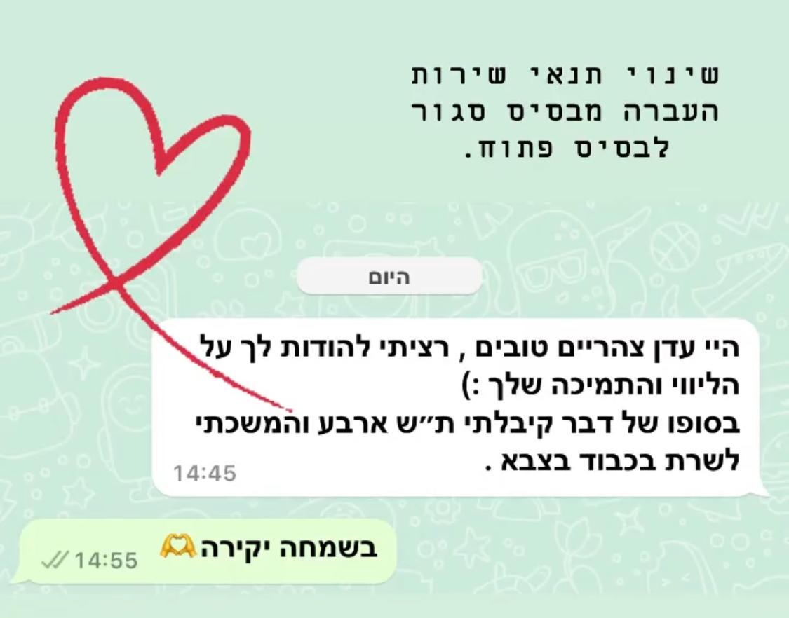 שינוי תנאי שירות מבסיס סגור לפתוח