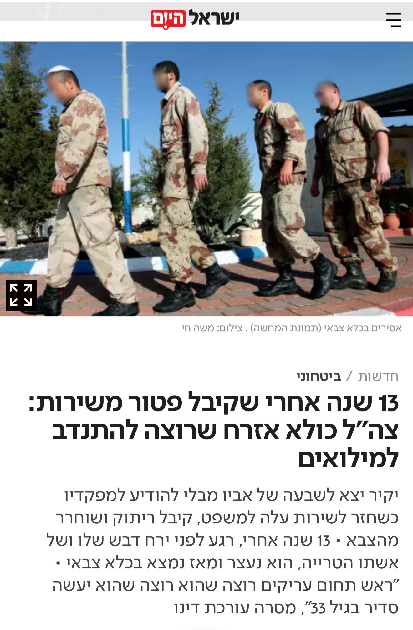 ״13 שנה אחרי שקיבל פטור משירות מוכן להתנדב למילואים אך הצבא מעדיף לכלוא אותו, מיוצג על ידי עו״ד עדן זינו״