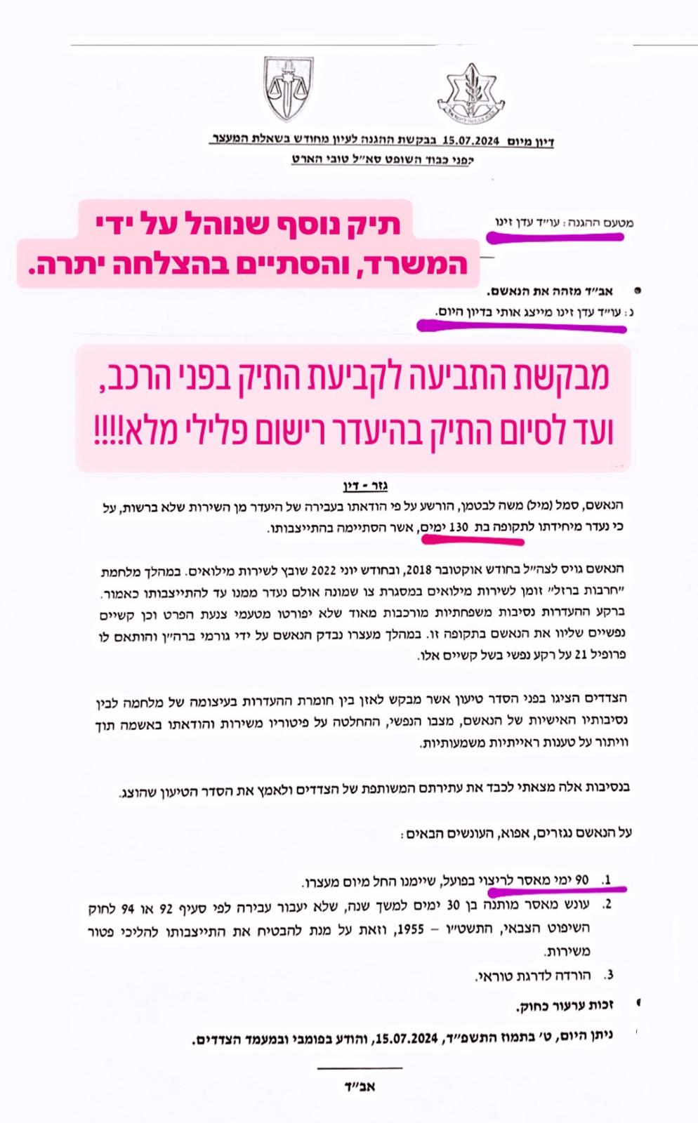 התביעה התנגדה לשחרור שליש אך ההרכב קיבל את הטענות של המשרד והורה על שחרורו של האסיר ממעצר !