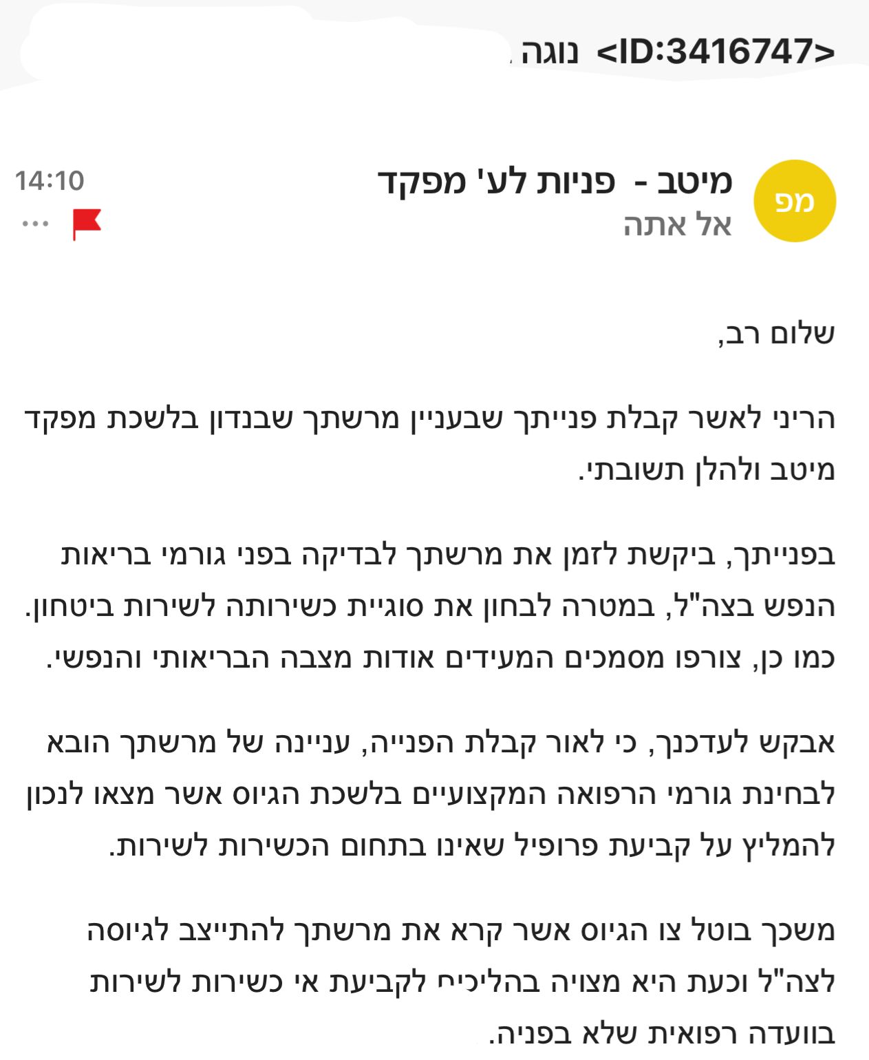 מיועדת לגיוס שקיבלה פטור מהצבא ואף יומיים טרם גיוסה ובהתאמה צוו הגיוס בוטל!