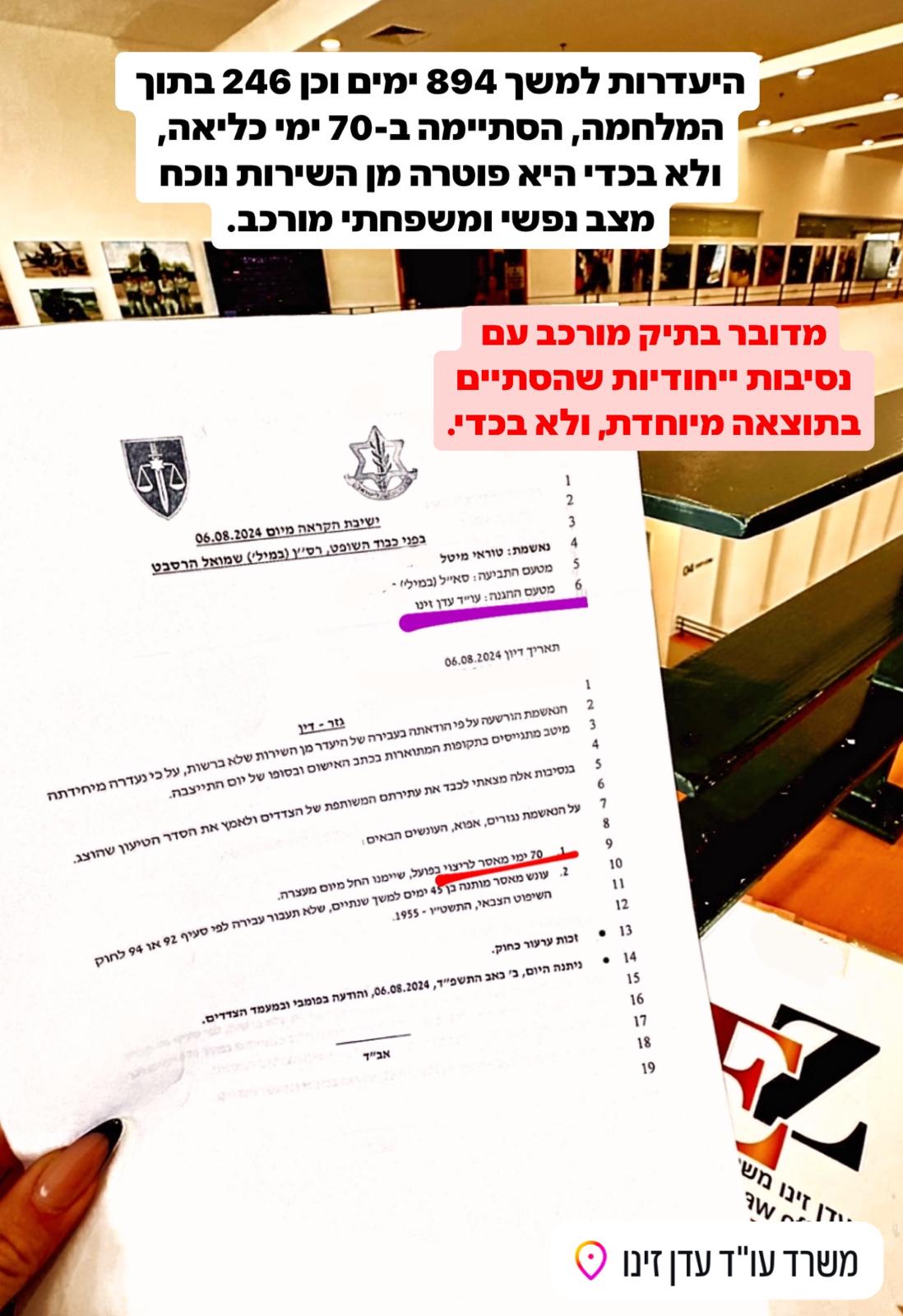"עריקות למשך 1,140 ימים,מתוכם 246 בזמן מלחמה,הסתיימה ב-70 ימי כליאה בלבד"