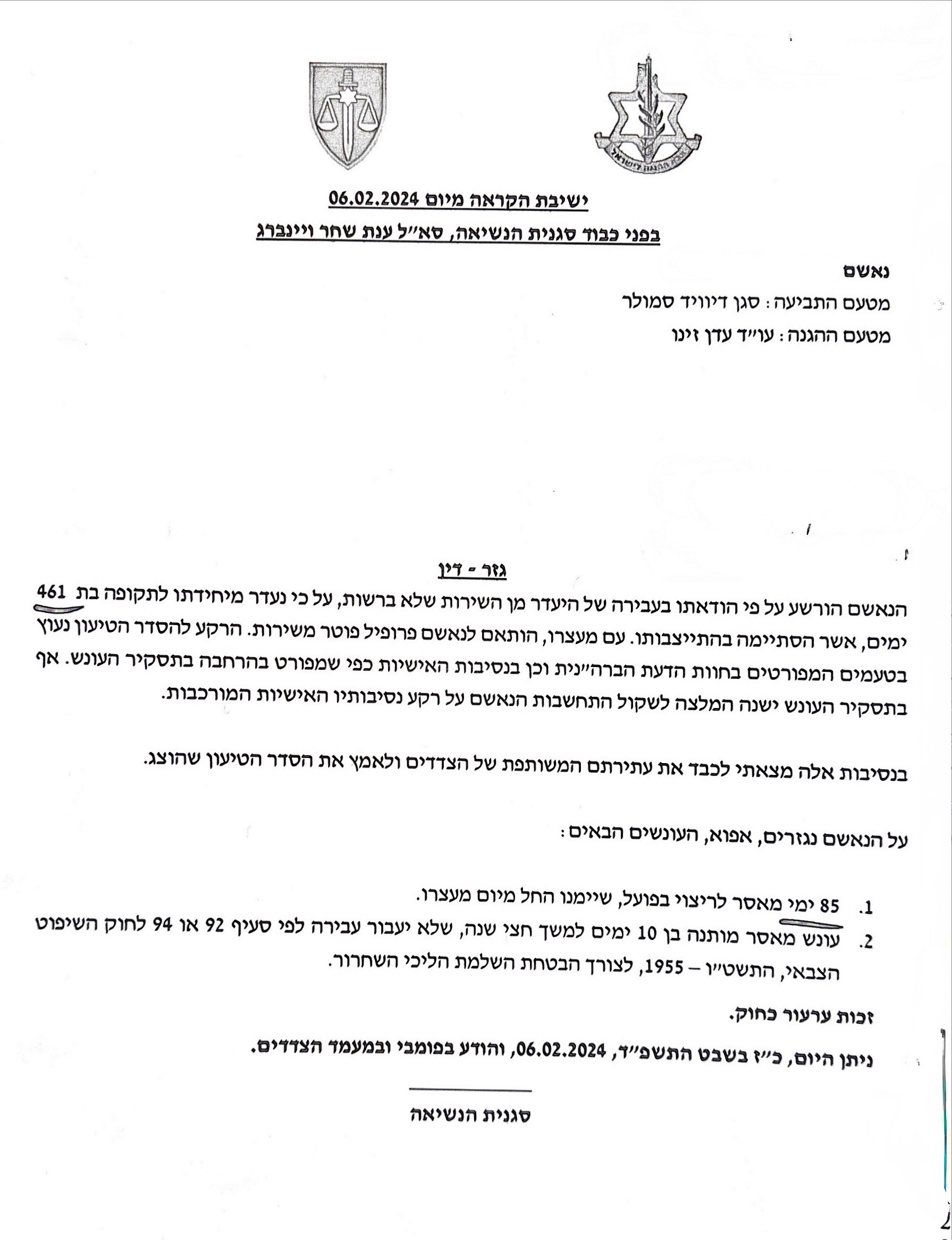 עריקות למשך 461 ימים מתוכם 60 ימי מלחמה הסתיימה ב- 74 ימי כליאה ופטור מצה"ל