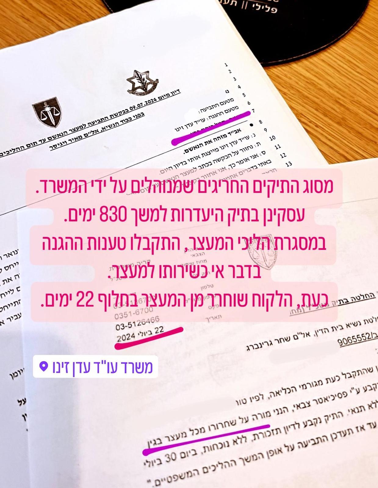 תיק היעדרות למשך 830 ימים במסגרת הליכי המעצר הלקוח שוחרר מן המעצר בחלוף 22 ימים