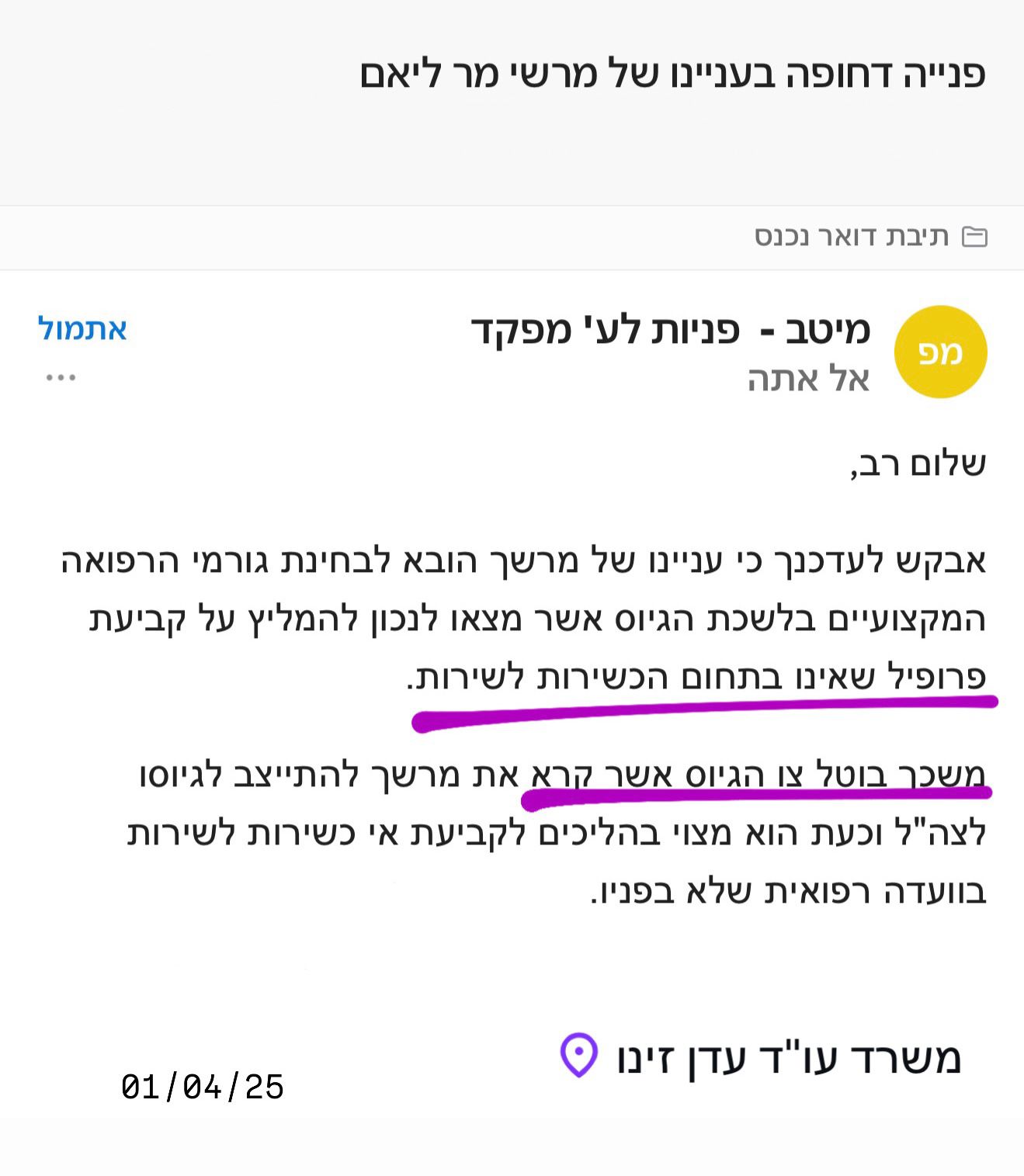 ״מלש״ב שקיבל פטור תוך מספר שבועות ואף יומיים לפני מועד גיוסו״