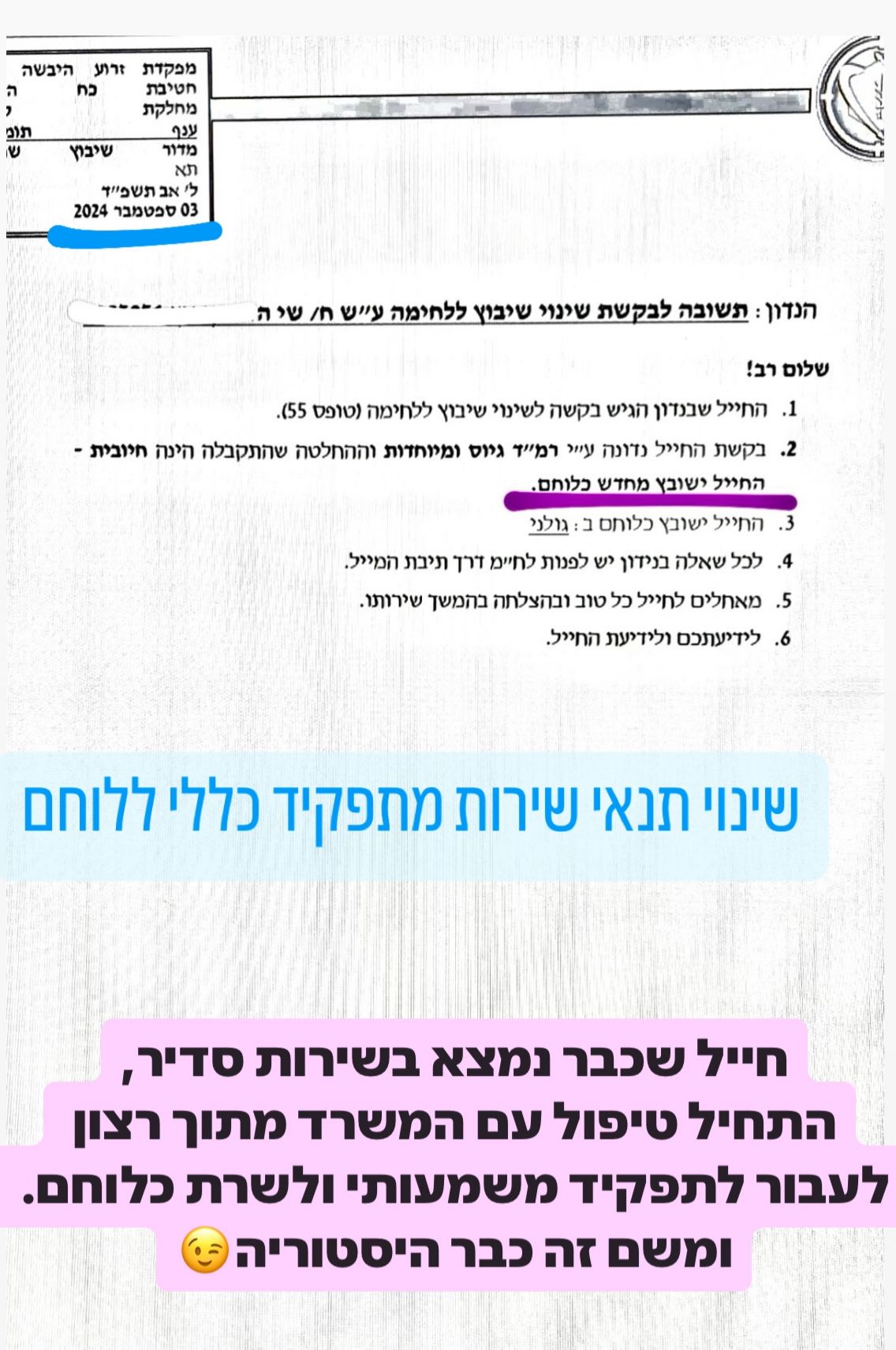 ״שינוי תנאי שירות מתפקיד כללי ללוחם״