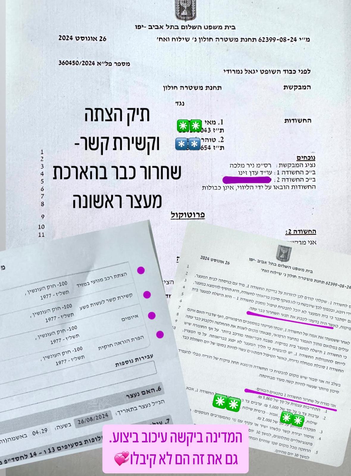 ״תיק הצתה וקשירת קשר- שחרור כבר בדיון מעצר הראשון״